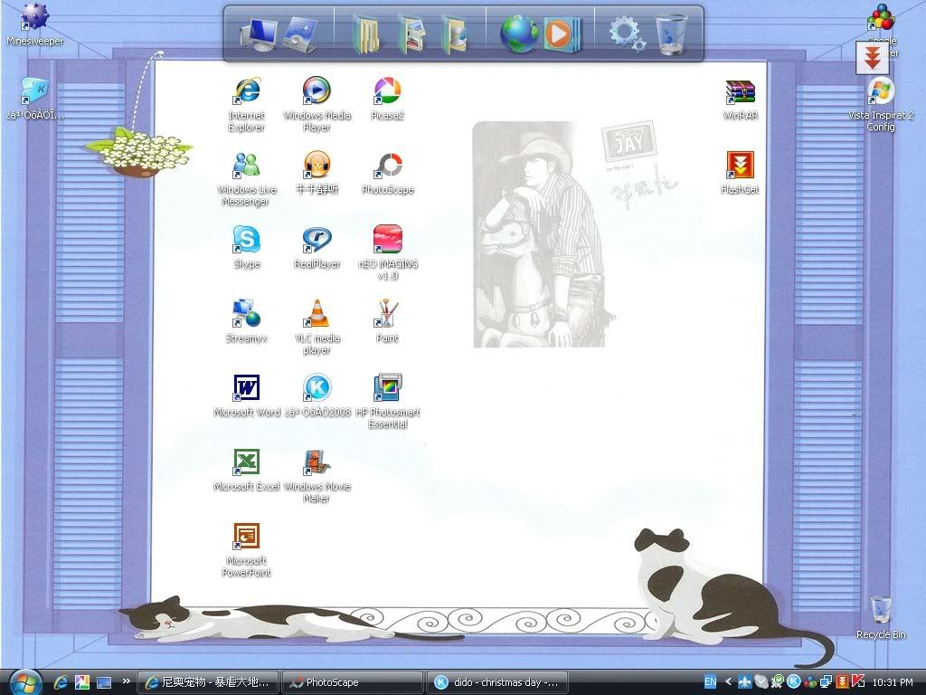 paiseh啊...虹玲...我还没有征求你的同意,就忍不住使用志聪的这幅画来edit我的destop了...不过为了保护志聪的版权,我把图片的opacity调到最低,而且绝对不会把他的原装作品摆上来.不过,还是得对照一下他的牛仔和真正的牛仔的(刚好我有那个封套~).我真的服了他...竟然画到酱像...如果他要收徒弟的话,一定要收我...杰伦万岁~